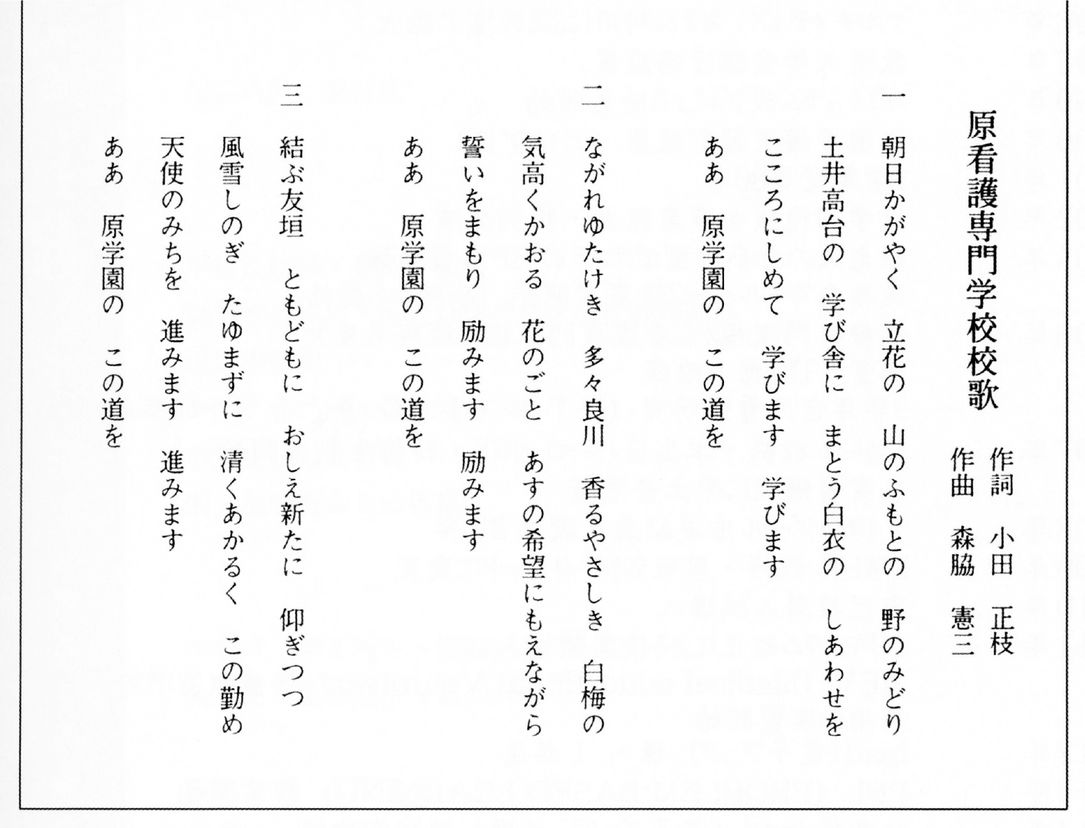 | 1975年12月 | 医療法人原病院付属高等看護学院、各種学校の看護婦養成所 (二年課程昼間定時制)の認可を受ける。 |