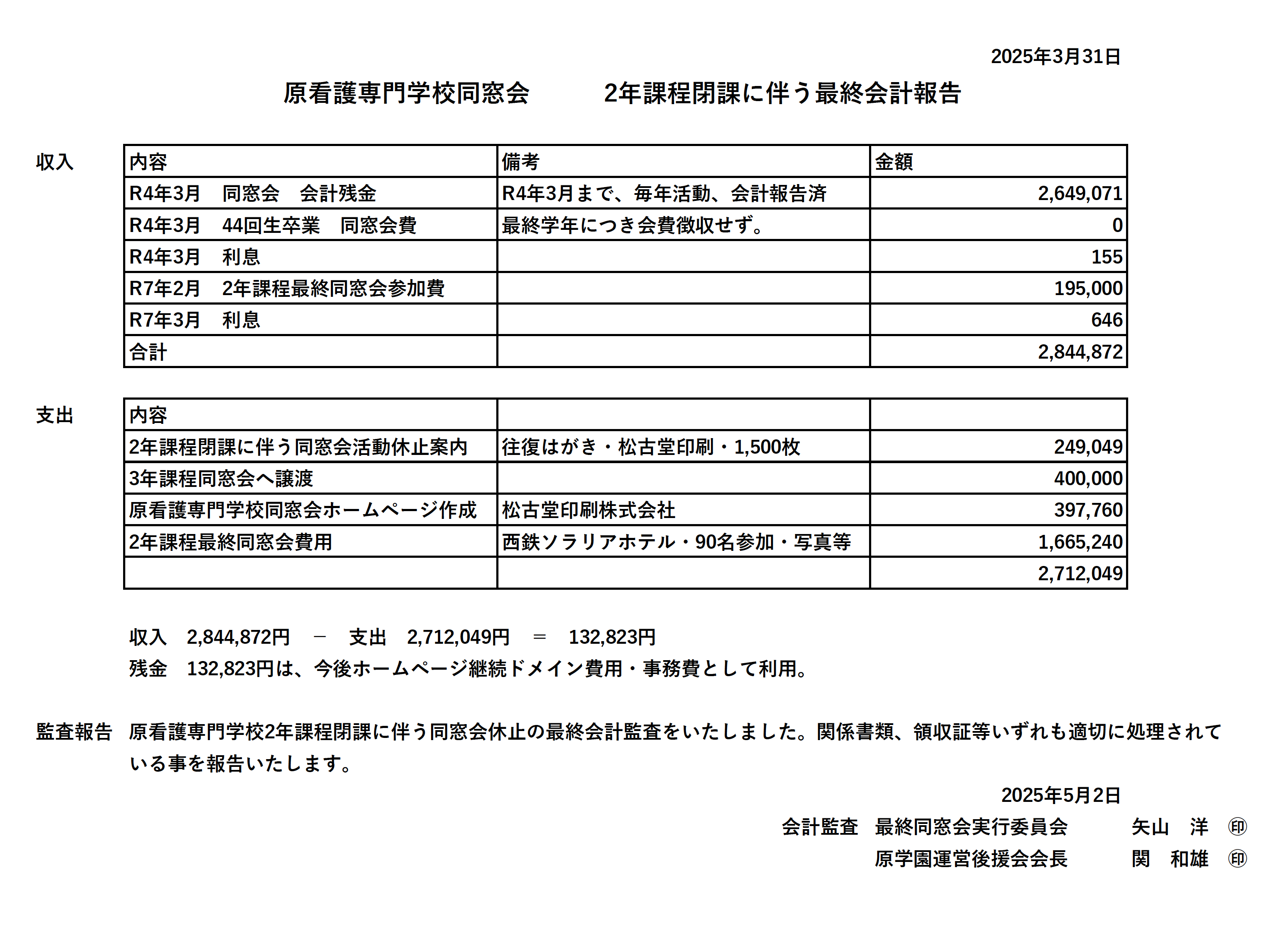 - 第2条 この会は、原看護専門学校同窓会と称する。